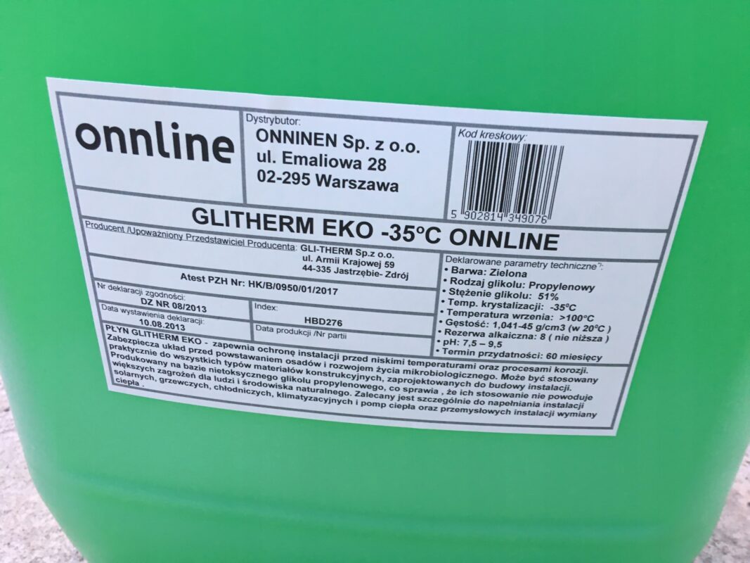 Płyn solarny glikol GliTherm EKO-35 20l.