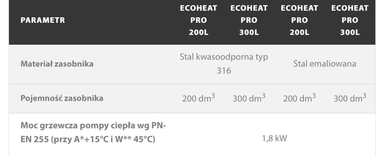 Tweetop ECOHEATPRO200E POMPA CIEPŁA CWU ECOHEAT PRO 200L -E ZASOBNIK EMALIA