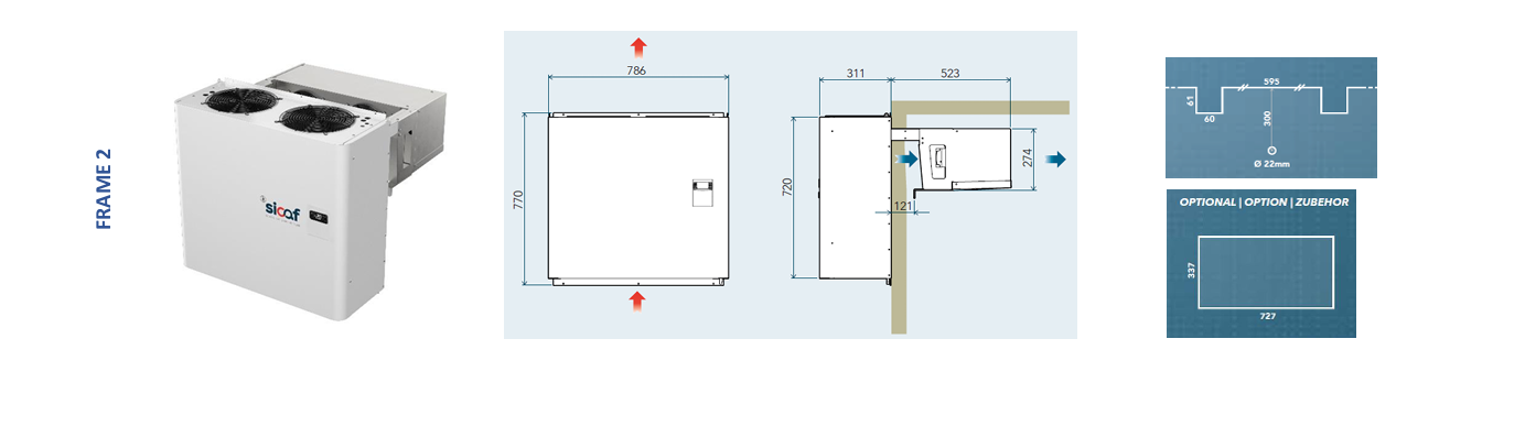 agregat do chłodni ścienny chłodniczy Monoblok SICAF ACN122 na 230V, z czynnikiem R455A