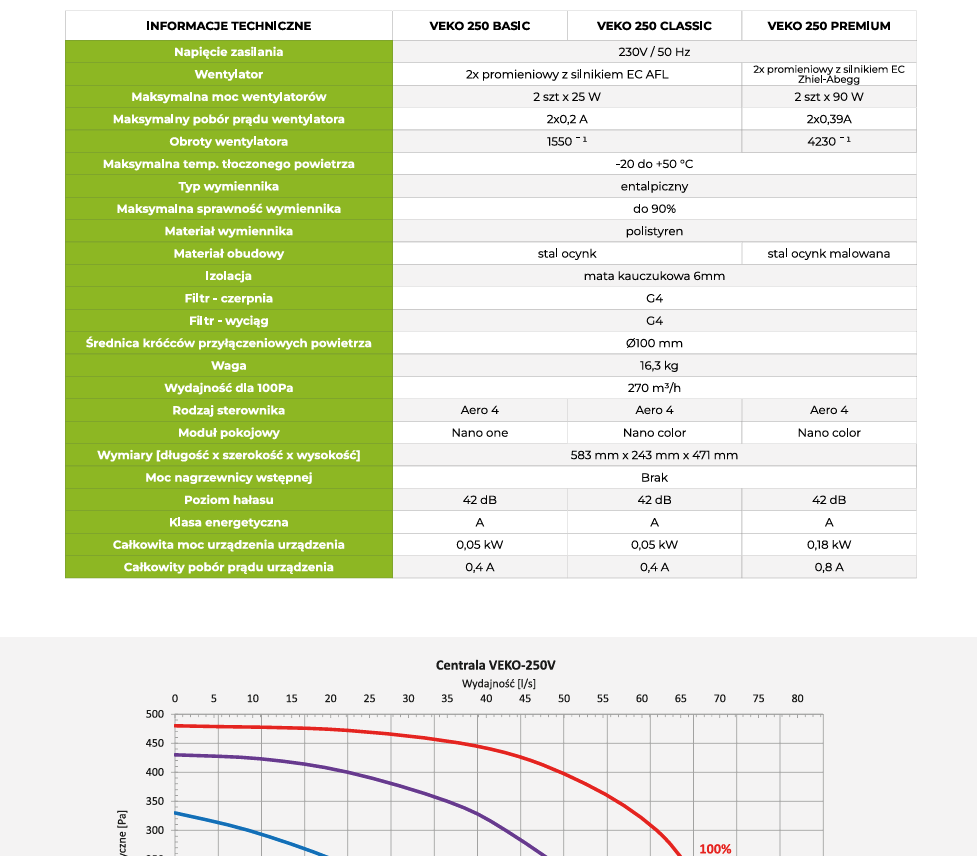 Oferuje centrala wentylacji rekuperator VEKO 250 Basic
