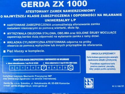 • wyposażony we wkładkę RIM WK M4 w najwyższej klasie zabezpieczenia – 6 wg PN-EN 1303:2007